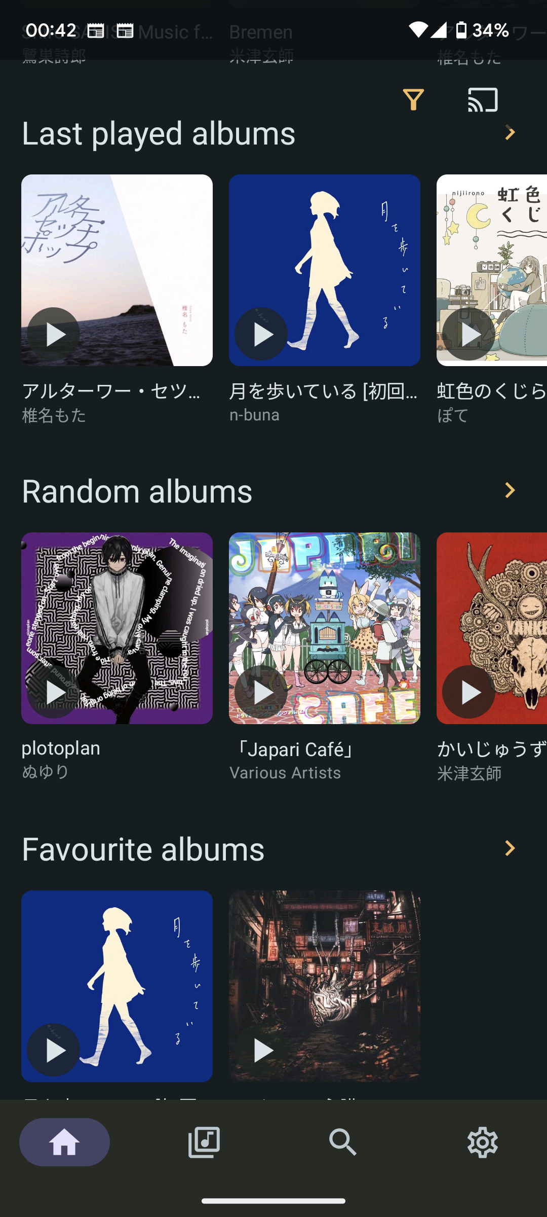 数分でスキャンが完了してアートワークが並び始める.